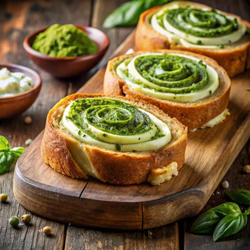 Sayuran hijau segar disajikan dengan olesan tahu krem yang diberi bumbu segar untuk rasa yang menarik dan memuaskan.